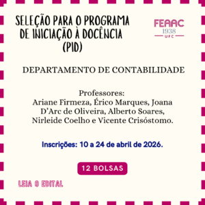 Data da publicação: 10 de abril de 2026 Categoria: Notícias, Seleção/BolsistaEstão abertas as inscrições para seleção de monitoria, contemplando um total de 12 bolsas entre remuneradas e voluntárias.
